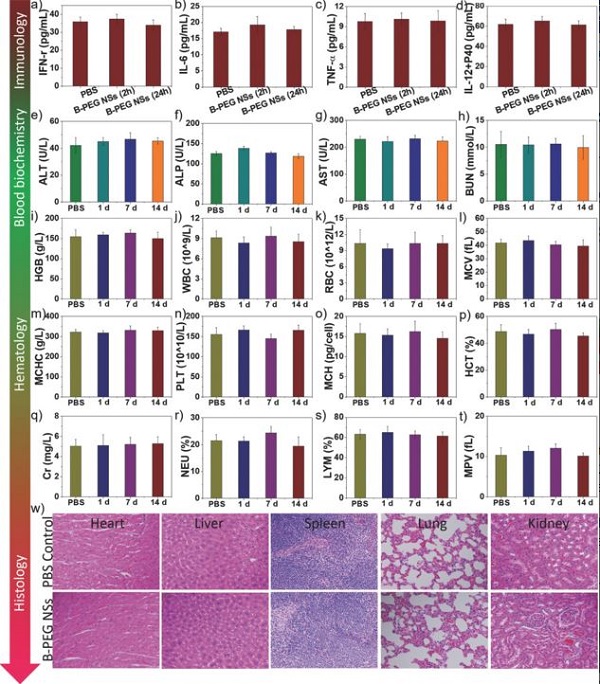 图4.硼纳米薄片的活体成像,体内分布和癌症治疗效果
