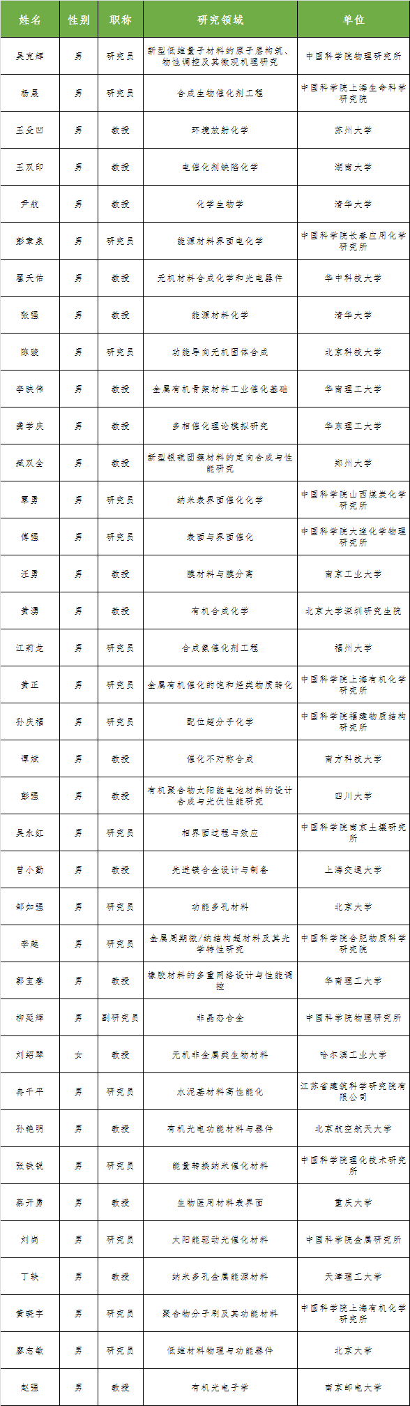日前,国家自然科学基金委公布了2018年获得杰出青年基金支持的人员名单。材料人整理了其中材料&化学研究方向的学者如下: