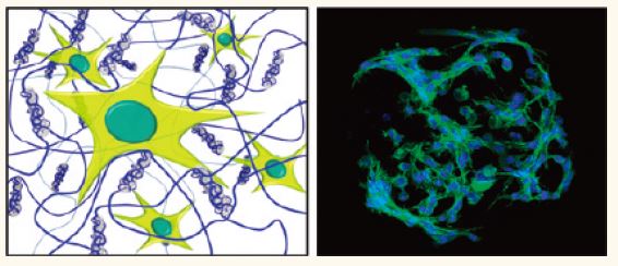 细胞的体外培养需要人工细胞外基质的支持,水凝胶作为细胞外基质的对象材料已经产生了广泛的研究。水凝胶三维细胞外基质支架具有丰富的含水量和孔隙,能够调节营养物质和代谢物的渗透行为,非常有利于细胞的增殖,然而这样的性质也影响水凝胶的力学性能使其不能有效支持细胞的生长。哈佛医学院的Ali Khademhosseini团队就曾制备了碳纳米管-明胶丙烯酸酯杂化微凝胶作为生物相容性的三维细胞负载平台。碳纳米管作为增强剂可以在保持水凝胶多孔性网络的前提下提高弹性模量,从而在保证物质在水凝胶中的渗透的同时为细胞的生长提供强有力的支架结构,进而可以保证进入水凝胶网络的药物或者营养物质可以持续地作用于细胞。此外,通过调节碳纳米管的添加量还可以调节水凝胶的力学性能,可以使得支架材料适应不同种类的组织构建行为。