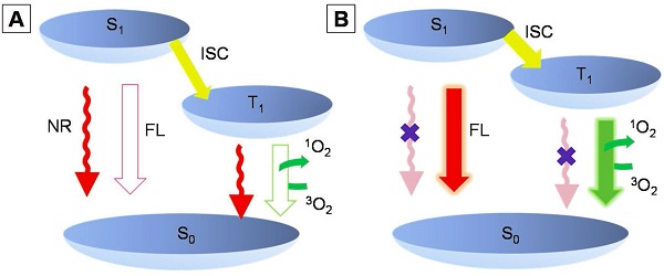 (b).AIE光敏剂的非辐射跃迁过程受到抑制,因而单线态氧的产生效率较高