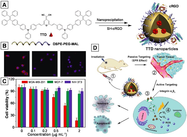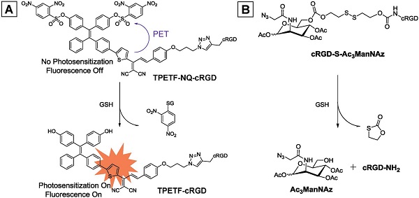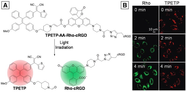 Figure 8.TPETP-AA-Rho-cRGD化学结构和工作原理