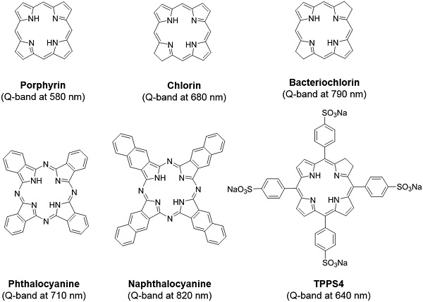 到目前为止,各种各样的光敏剂被开发出来用于光动力学治疗。合格的光敏剂应该满足以下几个基本标准:黑暗环境下很好的生物相容性,光照下较高的ROS产率,长波长范围内较强的吸收以及很好的抗光漂白性能。不少光敏剂已经实现了在临床上的光动力学治疗,比如卟吩姆钠已经被批准用于表面肿瘤治疗。
