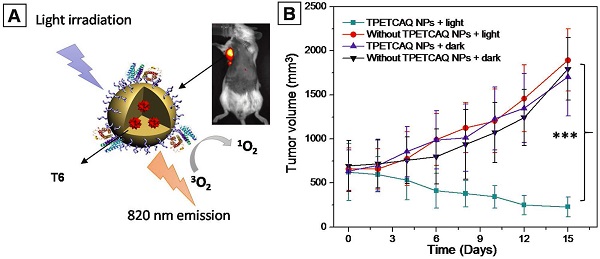光动力学治疗是一种利用光敏剂、光和内源氧来达到杀死癌细胞和微生物的治疗方法。光敏剂本身是没有生物毒性的,但在光照下会发生光化学反应产生十分活泼的单线态氧,可引起细胞死亡。因为光动力治疗可通过调节光照射面积来实现对治疗效果的控制,以此来减少对正常组织和器官的副作用。光动力治疗也因此吸引了科学家的广泛关注。