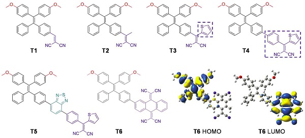 Figure 7.T1-6化学结构,以及T6的HOMO和LUMO电子云分布