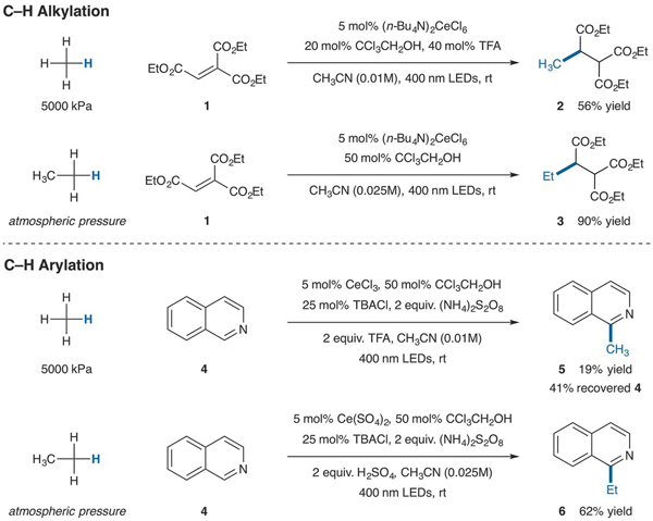 图3 使用甲烷和乙烷的光催化烷基化