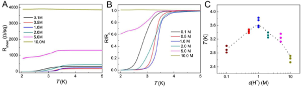 图4. 用梯度c(H+)处理的TaS2单层的超导特性