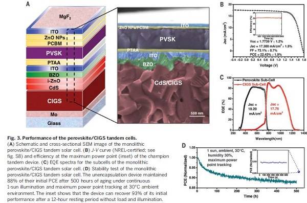 12. Science:高性能钙钛矿/Cu(In,Ga)Se2单片串联太阳能电池