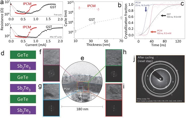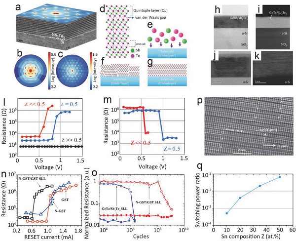 图5. 基于锗锑碲超晶格(GST-SL)的器件特性和结构表征