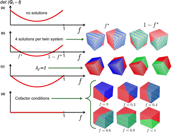 (b)可逆马氏体满足的双系统4种解决方案的一般情况;