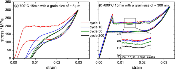 (c)在700℃退火样品的200次超弹性循环的功能疲劳图;