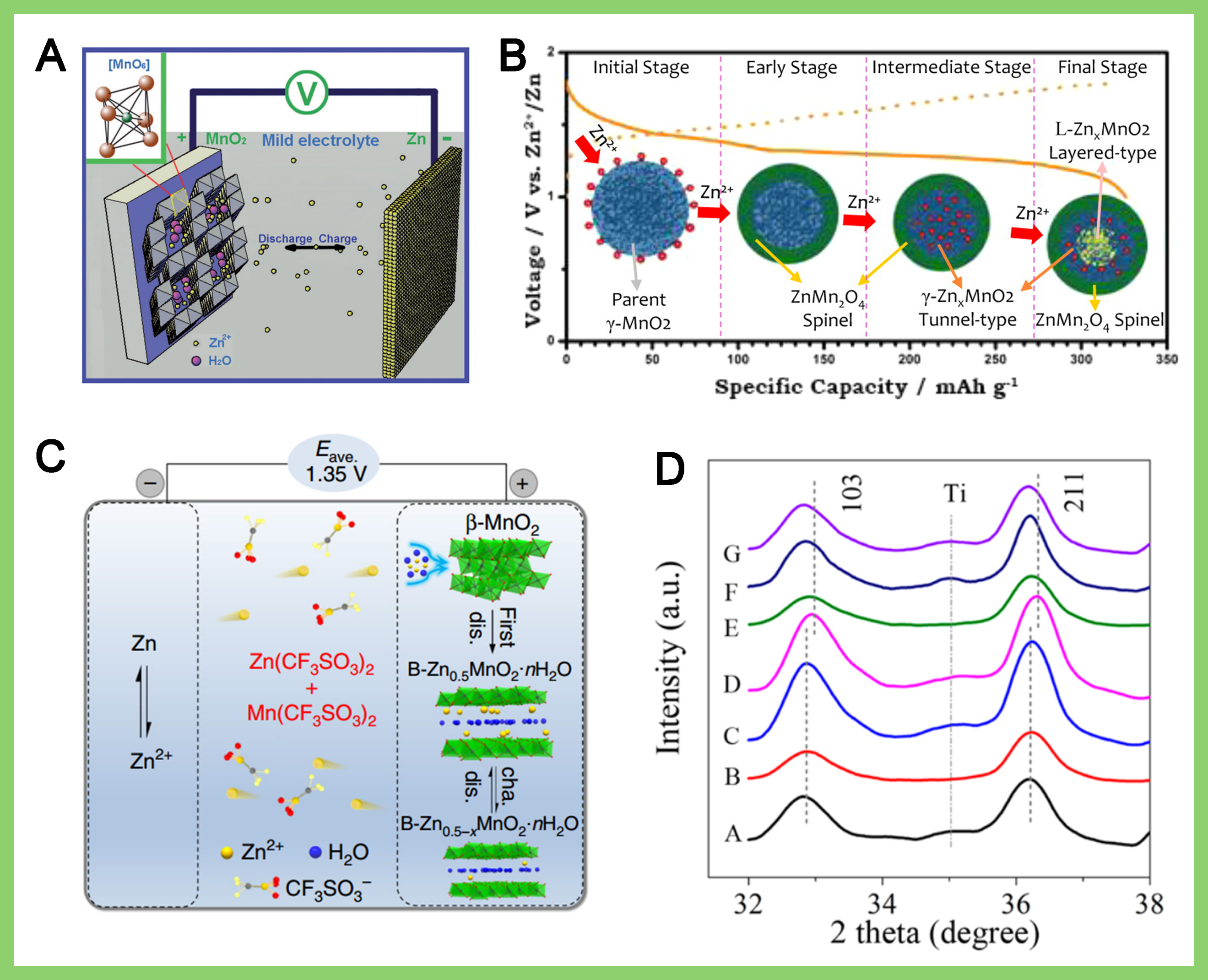 (A)基于α-MnO2正极和锌负极的水系ZIBs示意图;