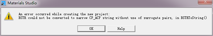 注意:新工程可保存在任意硬盘,但是必须保证文件路径为全英文,若存在中文字符,则会出现以下错误(如图1)。
