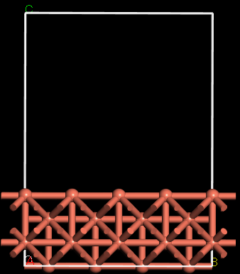 (5)选择Build> Crystals> Rebuild Crystal,选择1 P1,点击Rebuild。以球棍模型显示,即得到Cu(110)面。