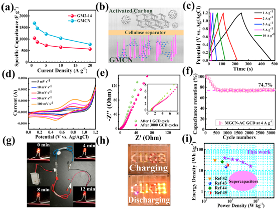 (f)GMCN // AC器件的长循环性能:在4 A g-1下,持续3000圈后,容量保持率达74.7%以上。