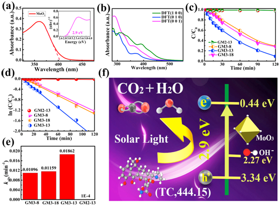 (f)在光催化剂MoO3的模拟太阳光照射下降解TC的可能机制。