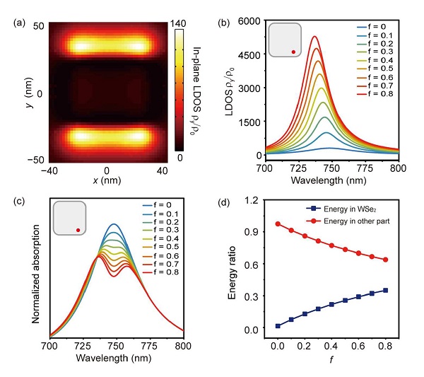 (a) 没有WSe2层时的NCOM在x或y方向上的LDOS分量,波长在746.4 nm;