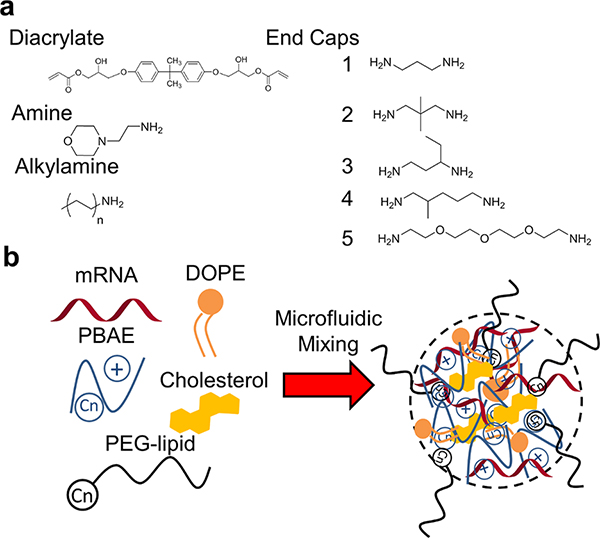 近日,美国麻省理工学院Daniel G. Anderson教授利用可降解的聚(β-氨基酯)与聚(乙二醇)-脂质缀合物配制成纳米粒子,并通过实验设计证实这种可降解聚合物-脂质纳米粒子能够在聚合物的合成和纳米粒子配制方面进行优化,从而实现mRNA递送效率多个数量级的增加。此外,研究还表明mRNA可以被递送到肺内皮细胞和肺免疫细胞中,进一步扩展了这些纳米粒子的潜在效用。该成果以题为”Optimization of a Degradable Polymer-Lipid Nanoparticle for Potent Systemic Delivery of mRNA to the Lung Endothelium and Immune Cells”发表在Nano Letters上。