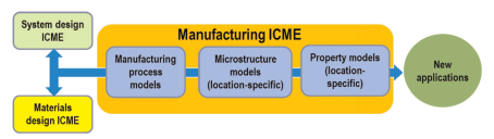 材料设计和开发的未来将基于ICME方法,ICME是将材料设计、制造工艺设计和系统设计集合到整体的计算框架中,如图12所示,可以通过模拟指定选区位置的微观结构和性能,从而得到最佳的工程产品。