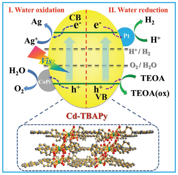 文章链接:Visible-Light-Responsive 2D Cadmium Organic Framework Single Crystals with Dual Functions of Water Reduction and Oxidation. (Advanced Materials, 2018, https://doi.org/10.1002/adma.201803401)