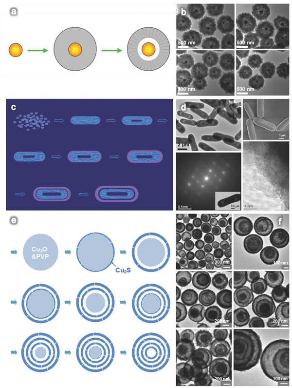 图13 从具有两个不同涂层壳的核–壳前体获得蛋黄核壳结构