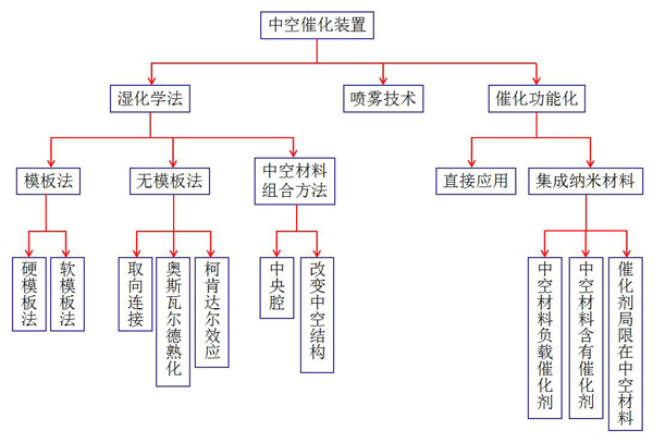 微米和纳米级中空材料是指一类特殊的功能材料,其结构配置具有内部空间或空隙以及一个或多个尺寸在微米或纳米范围内。此外,中空材料的概念有时也可以扩展到包括某些微观和纳米结构材料,这些材料不具有明确的中心空间但仍然是高度多孔的或“空心”的,例如海绵状低密度材料。近年来,这种新型功能材料已广泛应用于催化、储能、生物医学、环境保护、化学传感、光学等各种应用中,其具有独特的结构和高度可调的组合物带来的诸多优点。作为一种独特的中空材料,中空催化装置在这篇综述中被命名为所有的原始中空材料以及它们的衍生或修饰形式,这些材料具有化学反应过程的催化活性。一般而言,中空材料在催化方面的应用以两种方式实现。首先,中空材料可直接作为活性催化剂起作用。中空材料可以为表面催化的非均相反应提供更高的特定反应性。在这方面,这种中空材料的组成是直接应用适用性的决定因素。其次,为了拓宽应用领域,可以将纳米级活性组分进一步引入其壳体的外表面、孔隙和通道、壳体间空间、内壁或位于内腔内的额外催化剂载体,导致更复杂的结构和组合物作为催化装置。取决于活性组分的位置,这种整合的纳米催化剂可以通过促进和保持催化剂活性,在密闭空间中的化学反应以及反应物和产物的强制选择性在反应环境中提供更好的性能。