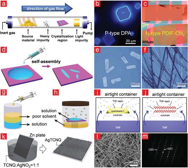 图5 小分子的有机微/纳米晶体通常使用蒸气或溶液处理技术制备