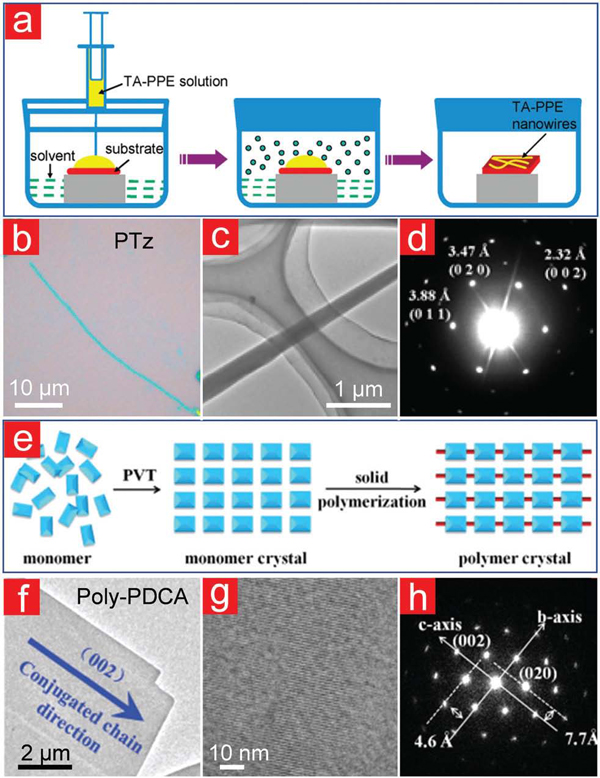 图6 共轭聚合物的有机微/纳米晶体通常使用蒸气或溶液处理技术制备