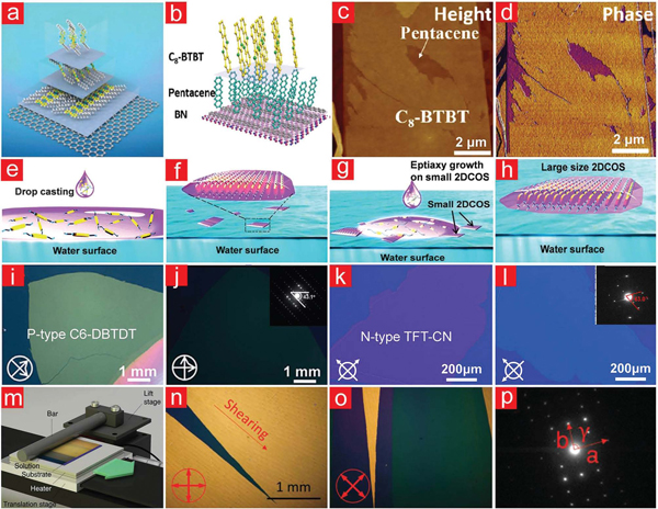 (n,o)通过棒涂法沉积的C8-BTBT晶体的偏振显微镜(POM)图像。