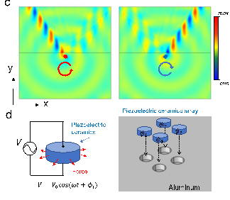 (D)利用嵌入在弹性介质(比如,铝)表面的具有一定相位差的压电陶瓷片,可以实现不同圆极化的弹性波点源。
