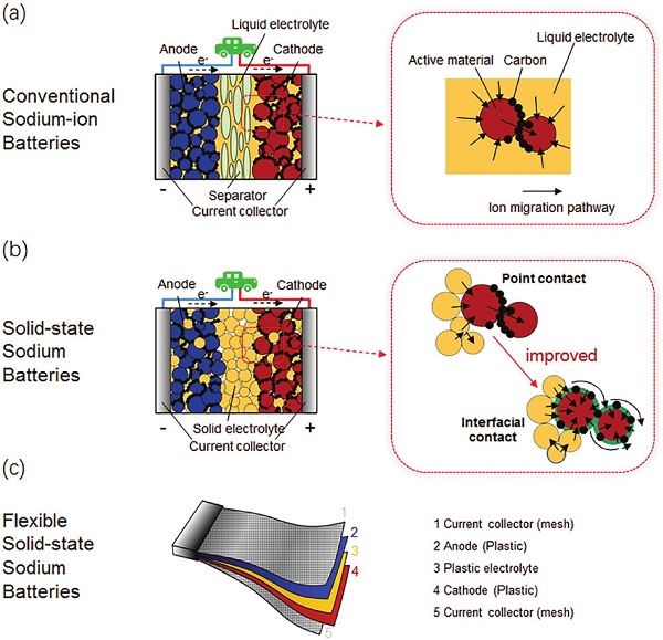余彦的团队在上Advanced Energy Materials发表了题为Solid-State Sodium Batteries的文章,该团队系统地总结了目前的钠基固态电池,并讨论了它们开发固态电池的潜在优势和劣势。固态电池作为OLE的有前途的替代品可以提供高能量和功率密度,长期循环和提高钠电池的安全性。然而,应该进一步克服一些挑战,包括高RT离子电导率,良好的化学/电化学稳定性,灵活的机械性能以及低成本和环境友好的制备工艺等,通过添加离子液体,用聚合物渗透,原位/非原位SEI形成等形成的湿界面中间层是解决该问题的有效策略。相比之下,柔性聚合物基电解质可以容易地用电极材料构建离子传导层,但是它们的低机械强度和差的电化学稳定性可能不利于长期循环。并且低RT离子电导率不利于大规模应用。具有中等机械强度和高RT离子电导率的硫化物电解质可以预期对电极材料实现良好的润湿性以获得更好的循环性能。不幸的是,它们的化学稳定性差可能导致安全隐患。材料创新需要进一步开发用于实际应用,界面问题是电极材料与电解质之间的桥梁,直接决定了电池的性能。良好的界面可以有效抑制钠金属枝晶的生长,减少钠-金属阳极的体积变形,对长期循环有深远的影响。