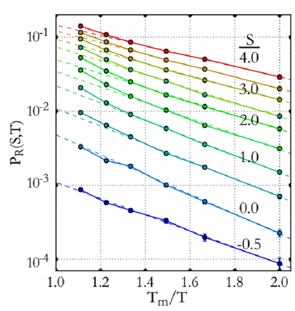 图3:温度低于0.80Tm时,重排可能性表现为Arrhenius行为。
