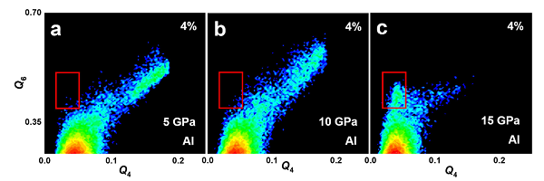 图3:不同压力下Al在Q4-Q6参量空间的结晶路径。