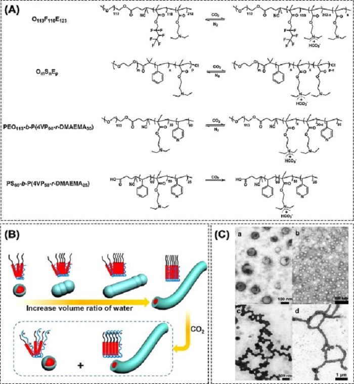 图10 CO2敏感的嵌段共聚物及其所形成的PWLMs (原文中图11)