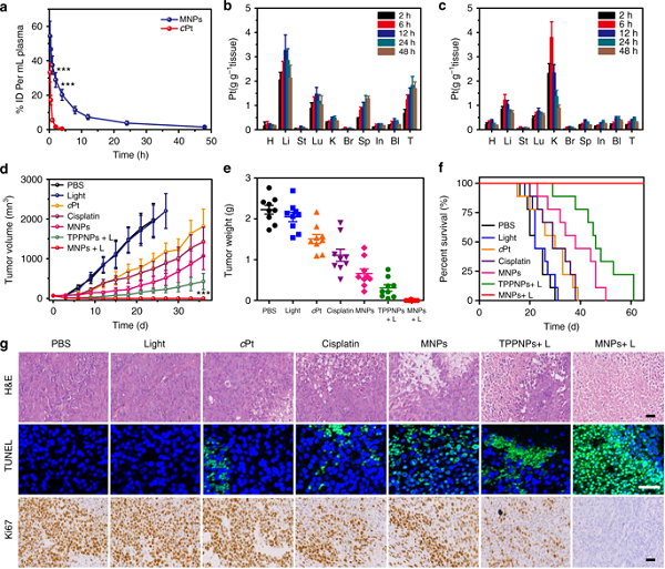 (a) 注射cPt和MNPs后血浆铂浓度与时间的关系;