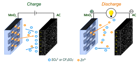 图1. 二氧化锰//活性炭(MnO2//AC)锌离子混合超级电容器结构示意图
