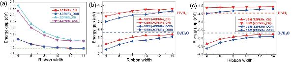 在块体材料中,光生载流子必须迁移到表面以进行HER和OER。在这一过程中,大量光生载流子可能重新复合,降低了光催化效率。当材料的尺寸减小时,光生载流子的复合可以被限制到一定程度。通常,对于2D材料,光生电子和空穴直接从具有原子厚度的2D材料的表面产生。此外,与其块体类似物相比,具有极大比表面积、相当高的载流子迁移率和可控界面等优势的2D材料为光催化过程提供了良好的探索平台。因此,用于分解水的2D光催化剂的探索和设计一直是实验和理论研究中的热门话题。通过使用第一性原理计算,已经证实大量2D材料可作为分解水的光催化剂,例如单层过渡金属二硫属化物、金属硫代磷酸盐、闪锌矿化合物以及MXenes等。然而,已有的光催化剂仍然不能完全满足带隙和带边位置以及光生电子和空穴高效分离的要求。到目前为止,已经筛选了各种2D材料用于水分解的光催化剂候选物。因此,进行能带调控以减小带隙并增强2D材料的空穴和电子的分离十分必要。通过能带调控,一些2D材料的光吸收可能大大提高,并且一些没有光催化活性的2D材料甚至可用于光催化分解水。外部应变是另一种半导体带隙调控方法。在半导体上外加应变来调控光催化剂的能带吸引了广泛的研究兴趣,因为其高度可控并且易于实施。