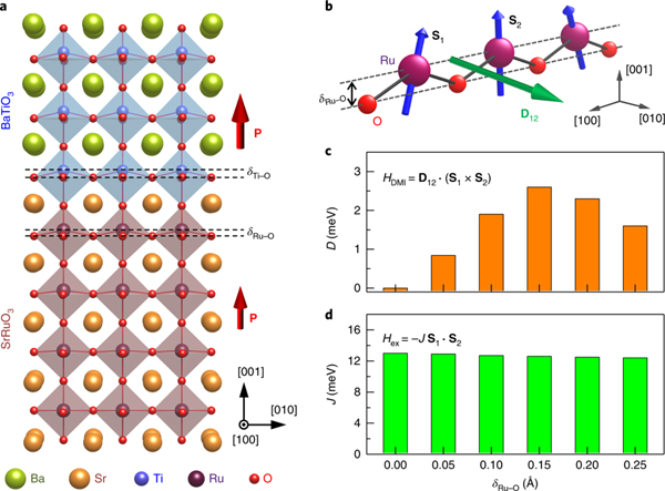 b,SRO中的DMI具有非零δRu-O。DMI向量D12垂直于由两个Ru阳离子和一个O原子配体组成的假想三角形。