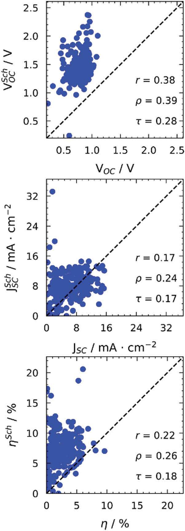 为本体异质结太阳能电池设计的新型有机半导体吸引了许多研究项目,根据其成分的知识预测太阳能电池的能量转换效率(PCE)。从理论角度看,由于光伏电池在吸收光的过程中发生了许多物理过程,如激子形成和迁移、电荷传输和重组。因此,对每个异质结进行微观建模并不是发现新材料和材料预测的可行途径,只能局限于几个基准系统。根据有限数量的易于计算的参数,通过模型可以使新半导体的预测变得有效。这类模型中最著名的模型之一是Scharber模型,它依赖于一些合理的假设,仅利用供体-受体对的一些电子参数来获得光伏效率的预测。然而,如果没有形成一个全新的理论,就很难将模型扩展到包括额外的电子参数、其他各种性质的描述符(结构、拓扑、热力学)或其他现象。