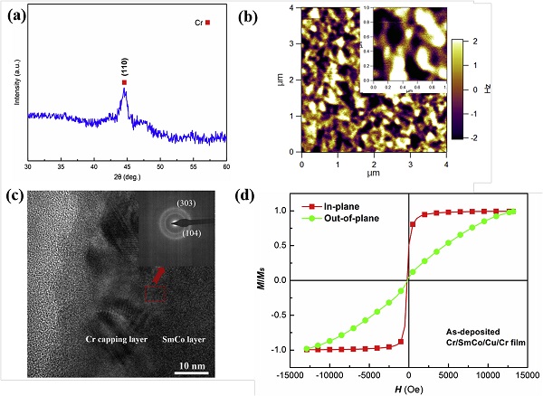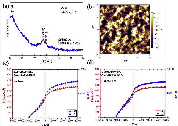 图4. Cr/SmCo/Cr薄膜的磁结构与磁性能
