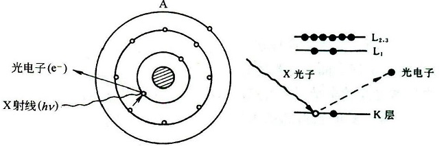 其源于光电效应:原子在X-ray的作用下,内层电子得到能量而发生电离成为自由电子。出射自由电子满足Einstein的能量关系式: hν = EB + EK