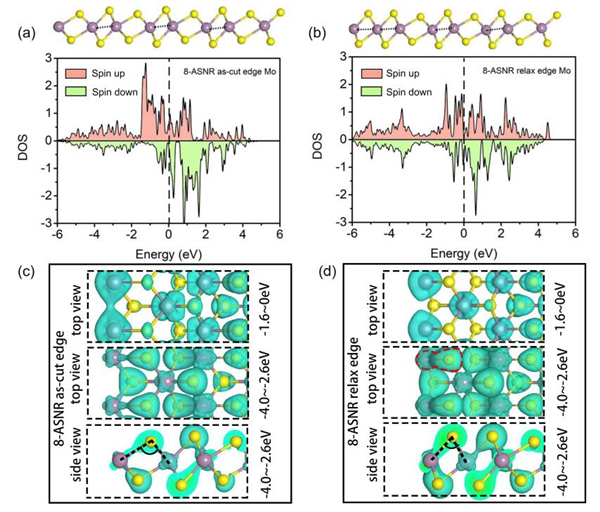 (a)在N-Z = 8的AS-NR的切割边缘处的Mo原子的电子投射态密度(PDOS)图;