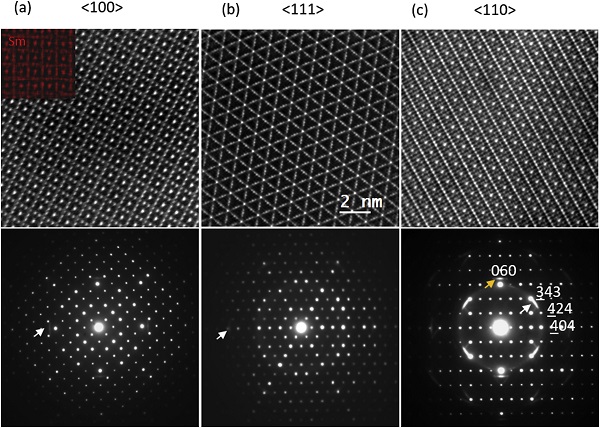 如白色箭头所示,衍射图案中的弧显示来自fcc-Al