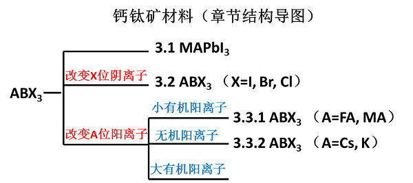 在本章中,作者以钙钛矿的晶胞结构ABX3为主体,通过改变不同X位的阴离子,A位阳离子,从材料的角度出发,介绍了组成不同的钙钛矿材料和不同的工艺制备方法来获得大面积钙钛矿薄膜的进展趋势、问题以及策略。作者认为应进一步开发新工艺制备方法,以获得大面积和高质量的钙钛矿薄膜。尽管混合离子的三维钙钛矿表现出非常优异的器件性能,但环境稳定性仍然是其商业化的障碍。与三维钙钛矿器件相比,2D/3D钙钛矿光伏器件具有优异的稳定性和耐水性,非常有希望实现高效和稳定的商业化光伏器件,因此应该给予高度重视。