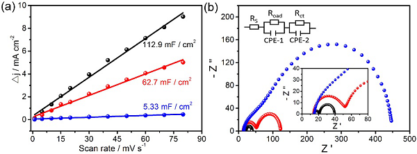 图4 不同层数纳米片的电化学活性面积(ECSA)和电化学阻抗分析