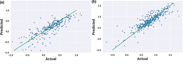 综上所述,作者开发了一种基于随机森林方法的机器学习模型来预测基于Au的纳米团簇的CO吸附能量,首先使用Ag合金化的Au25纳米团簇训练模型。使用两步特征选择过程和特征工程方法,作者对吸附能进行了预测,精度为0.78(R2)和0.17(RMSE)。为实现快速预测,作者选择的特征仅基于未优化的吸附系统的结构特性。此外,作者使用与Au25模型相同的定义特征预测了较不对称的Au36纳米团簇和较大的Au133纳米团簇中的CO吸附能,预测精度(R2)分别为0.65和0.75。该模型有望作为一种初筛工具来筛选符合条件的材料进一步准确分析。