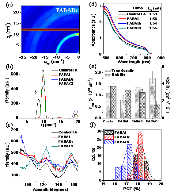 (a-c).卤素阴离子对钙钛矿晶体取向性的影响