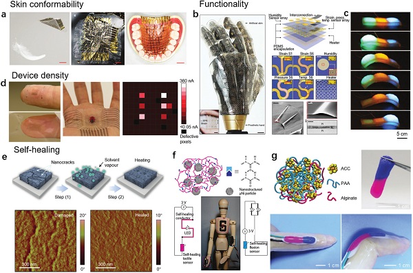 Figure 7.多功能电子皮肤的特性示例。