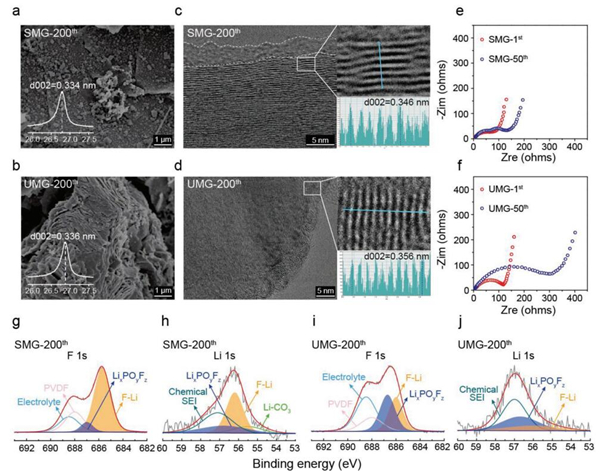 图 3 在首次充放电状态下,SMG和UMG电极的结构分析