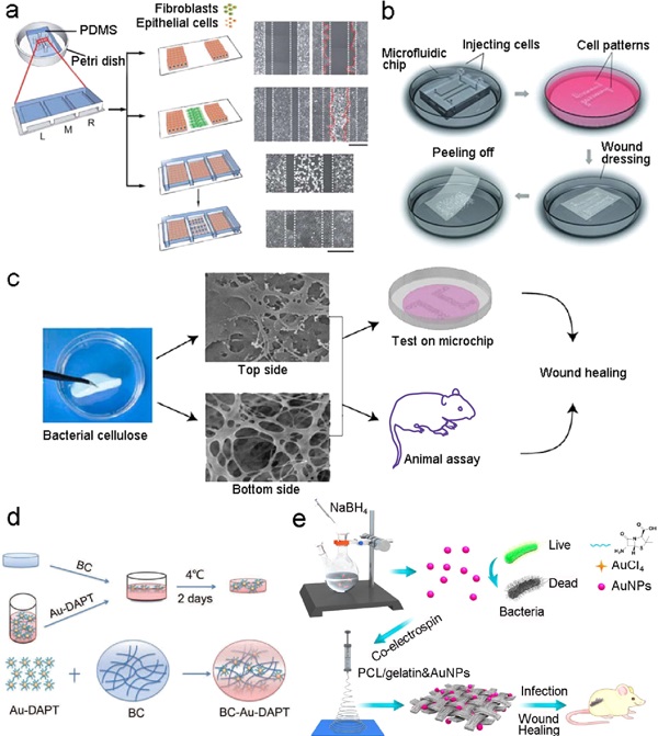图7.基于微流控芯片的伤口愈合模型和伤口敷料筛选