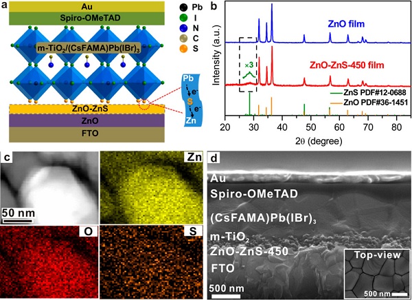 图1 ZnO-ZnS ETL及其器件的结构表征